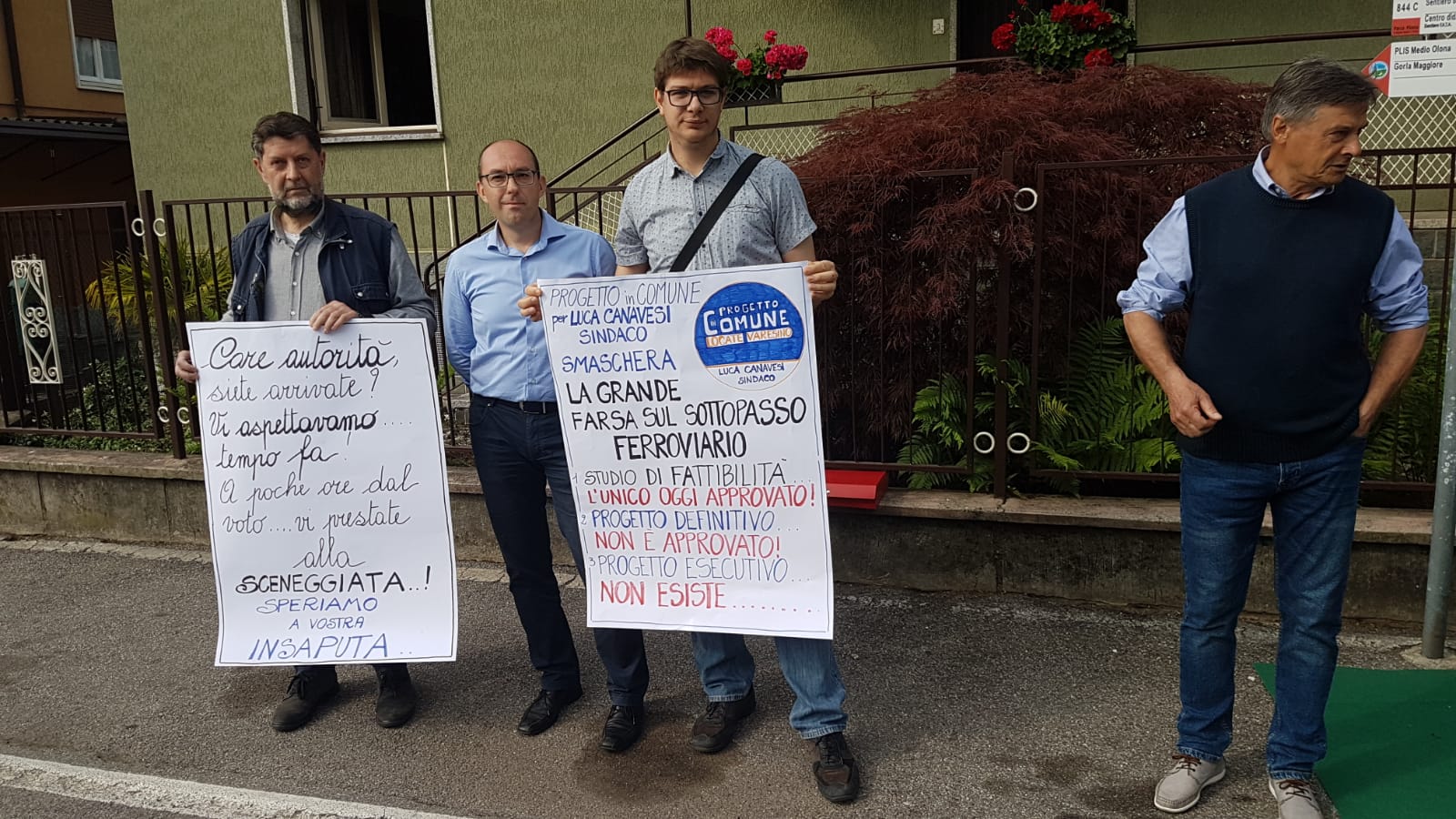 Contestazione stamattina alla cerimonia di posa della prima pietra per il sottopasso di Locate Varesino.