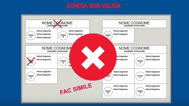 Per l’elezione della Camera dei Deputati e del Senato della Repubblica non è previsto il voto disgiunto, quindi è importante porre attenzione in cabina elettorale. Il voto, infatti, risulterà nullo se l’elettore traccia un segno sul rettangolo contenente il nominativo del candidato uninominale e un segno su un rettangolo contenente il contrassegno di una lista cui il candidato non sia collegato.