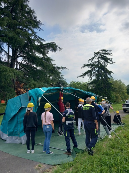 Nella giornata conclusiva di martedì 14 maggio, i ragazzi si sono cimentati nelle seguenti attività: montaggio tenda, utilizzo radio, attività idrogeologica, riempimento sacchi, primo soccorso, spegnimenti incendi, nodi.