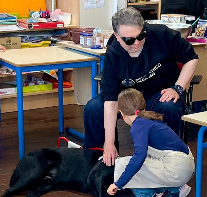 Gli studenti incontrano Magnum, cane guida, per parlare di inclusione
