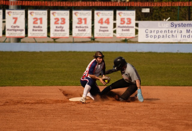 Così come accaduto in gara uno venerdì sera, il Quick Mill Bollate si regala una preziosa doppietta in rimonta nel derby contro l’MKF Saronno, pareggiando la partita al settimo inning (1-1) e vincendola poi alla seconda ripresa supplementare (5-7). È proprio agli extra-inning che le due squadre regalano un susseguirsi di emozioni, fino all’epilogo favorevole alle campionesse in carica. Nella parte alta dell’ottavo inning, le valide di Modrego e Cecchetti portano il Bollate avanti 4-1. Al cambio campo però prima De Luca accorcia il distacco con un doppio, poi il fuoricampo al centro di Pouye da 2 RBI manda la sfida alla nona ripresa. Qui sono ancora una volta Modrego – doppio da 2 punti – e i 4 ball con tutti i cuscini occupati di Zayas a riportare avanti il Quick Mill. Nell’ultimo disperato assalto l’MKF trova subito due valide con Anselmi e Rotondo (5-7), ma Zayas si esalta sulla linea di Saviola all’interbase con una gran giocata in tuffo che dà il via al doppio gioco in seconda. Le basi ball di Peterson e De Luca tengono in vita il Saronno ma sul successivo lancio pazzo di Bigatton, entrata come rilievo ai supplementari, arriva l’eliminazione a casa base che chiude la contesa.