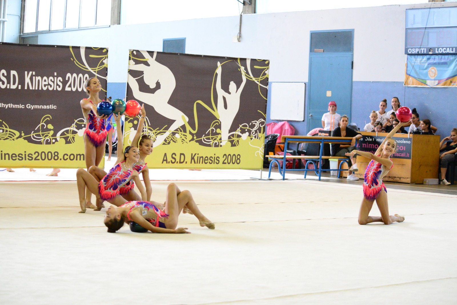 Inizia la stagione, prima gara e primi successi per le atlete della Kinesis 2008 di Venegono. La società sportiva di ginnastica ritmica domenica mattina ha ospitato la prima prova regionale del Campionato di Insieme Gold della Federazione Ginnastica d’Italia. Le atlete di casa Alessia D’Agostini, Martina D’Agostino, Chiara Zambon, Daniela Goxha e Alessia Cucchetti (tutte anno 2007) non hanno deluso le aspettative e hanno vinto la categoria allieve, grazie ad una buona esecuzione nell’esercizio con le cinque palle.