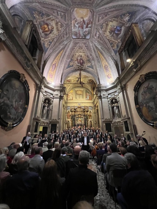 “La leggenda che vuole Salieri roso dall’invidia al punto di attentare alla vita di Mozart è molto probabilmente solo un falso storico” – ha commentato il m°Marco Raimondi – “La verità che emerge dalle testimonianze epistolari tramandate fino a noi è che i due musicisti si sono incontrati e hanno anche avuto dei diverbi ma hanno collaborato e i loro rapporti sono sempre stati improntati sulla stima ed il reciproco apprezzamento, come dichiarato più volte dallo stesso Mozart”. La seconda parte del programma è invece stata dedicata a Wolfgang Amadeus Mozart, con l’esecuzione della maestosa Trinitatis Messe K167, una delle sue messe giovanili più ispirate, e del celebre Ave Verum Corpus K618, capolavoro di intensa spiritualità e purezza.