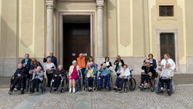 Questo è finalmente successo lunedì: gli educatori hanno pensato, infatti, di portare gli ospiti a vedere la nuova facciata della chiesa San Martino, riqualificata e inaugurata poche settimane fa. La comitiva è entrata in chiesa, ha fatto qualche preghiera e acceso dei ceri. Successivamente, gli anziani si sono spostati al bar per rifocillarsi e fare merenda.